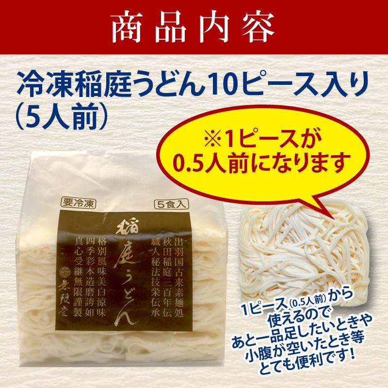 | 内容量 | 冷凍稲庭うどん 1袋(100g×10ピース) |