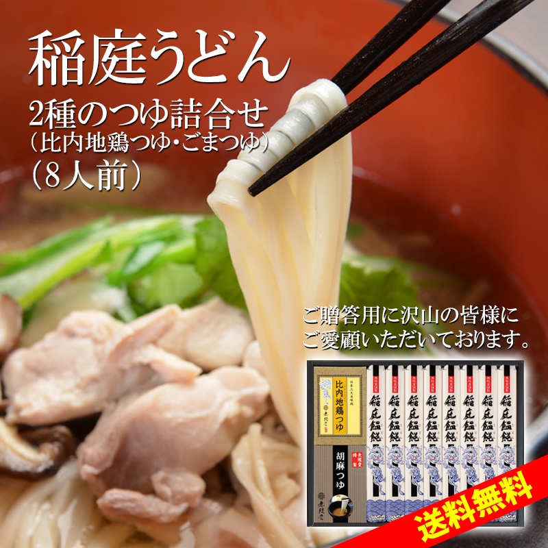 稲庭うどん 2種のつゆ(比内地鶏つゆ/胡麻つゆ)付き(8人前)【送料無料商品】