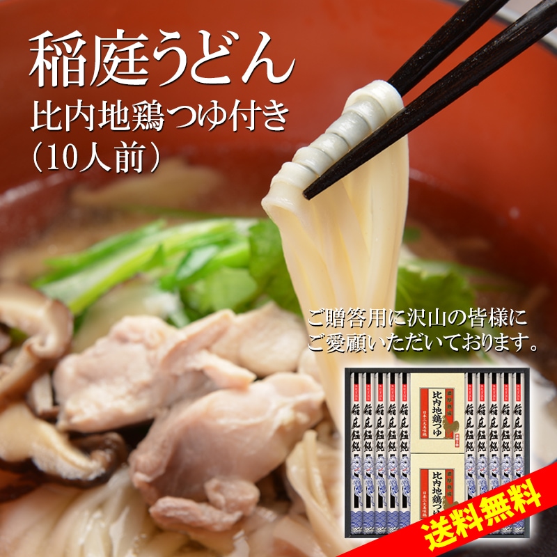 稲庭うどん比内地鶏つゆ付ギフト 10人前 【送料無料商品】